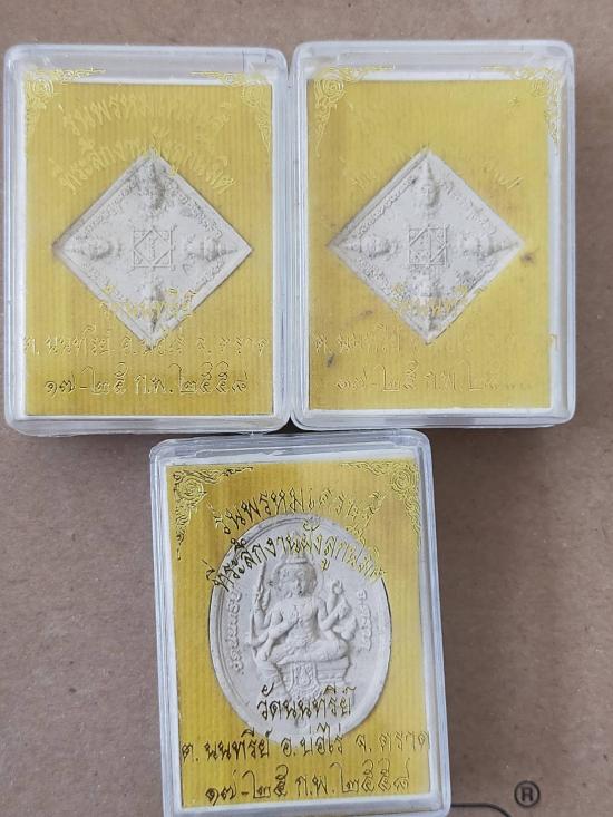 วัดใจ เคาะเดียวพระผง หลวงปู่บัว รุ่นพรหมเศรษฐี ที่ระลึกงานฝังลูกนิมิต วัดนนทรีย์ อ บ่อไร่ จังหวัดตราด 3 องค์