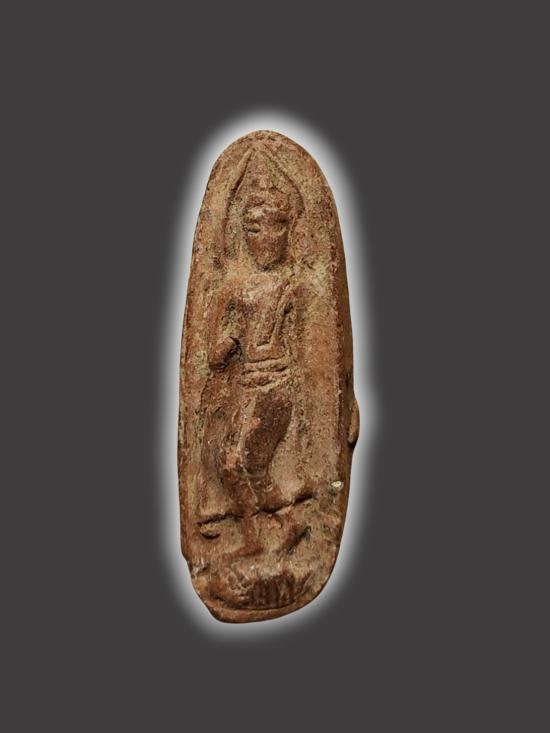 A6090.พระเนื้อดิน ปางลีลา ไม่ทราบที่ เคาะเดียวเเดง