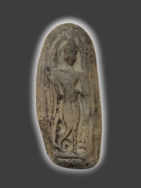 A6094.พระเนื้อดิน ปางลีลา ไม่ทราบที่ เคาะเดียวเเดง