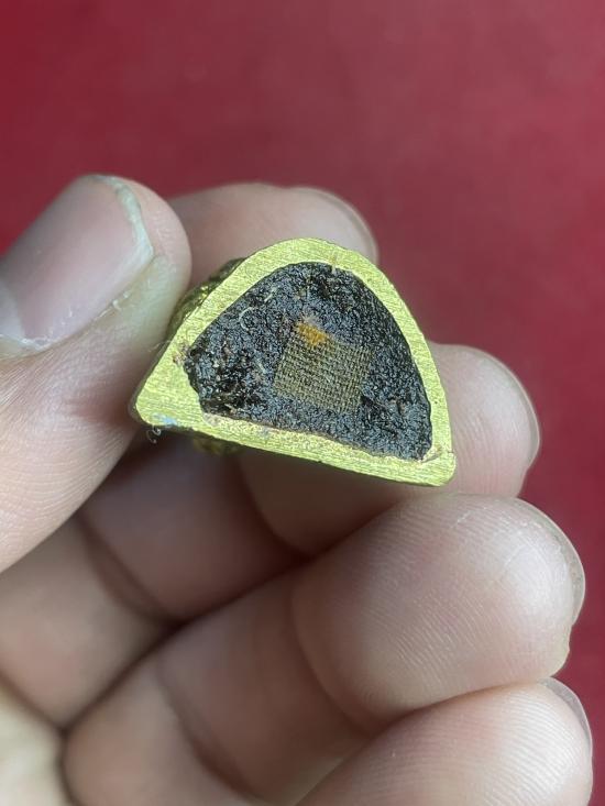 รูปหล่อหลวงปู่ศิลา รุ่นรวยโกฏิล้าน เนื้อทองฝาบาตร เลข 109 กล่องเดิม