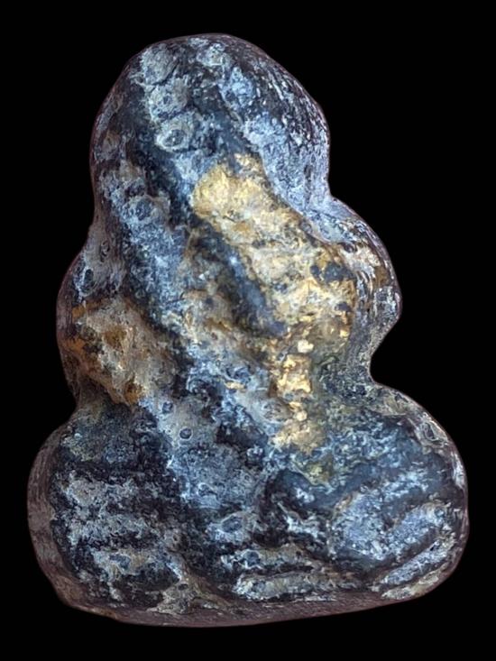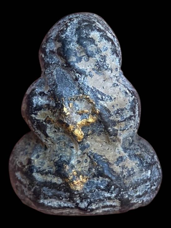 พระปิดตาเก่า ไม่ทราบที่ ลักษณะองค์พระเป็นทรงปิดตานั่งสมาธิ งานเก่าโบราณ ผิวองค์พระมีคราบทองเก่าหลงเหลือกระจายตามซอกและผิวเดิม แสดงถึงการผ่านการใช้งานและบูชามาอย่างยาวนาน ร่องรอยอายุธรรมชาติ ฟอร์มองค์โดยรวมดูเป็นงานเก่าสายบ้าน ๆ ไม่ทราบสำนักหรือเกจิแน่ชัด เหมาะสำหรับผู้ที่ชื่นชอบพระปิดตาเก่า มีคราบทองเดิม บูชาติดตัวหรือเก็บสะสม พิจารณาตามภาพและความพอใจเป็นหลัก