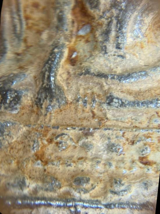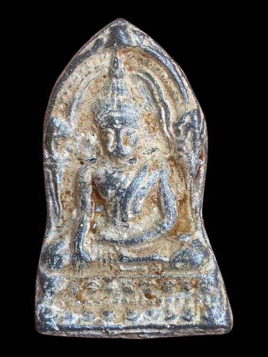 พระกรุเนื้อชินเก่า ไม่ทราบที่ ลักษณะเป็นพระกรุเนื้อชิน ฟอร์มทรงสามเหลี่ยมยอดแหลม องค์พระนั่งปางสมาธิภายในซุ้ม ผิวเนื้อชินเก่าแห้ง มีคราบกรุและคราบอายุธรรมชาติปรากฏทั่วองค์ รายละเอียดองค์พระยังพอมองเห็นเส้นสายเดิม ฐานและซุ้มมีร่องรอยการฝังกรุชัดเจน ไม่ผ่านการล้างหรือแต่งผิว ลักษณะโดยรวมเป็นพระกรุสายเก่า เหมาะสำหรับผู้ที่ชื่นชอบพระกรุเนื้อชินเดิม ๆ เก็บบูชาหรือสะสม พิจารณาตามภาพและความพอใจเป็นหลัก