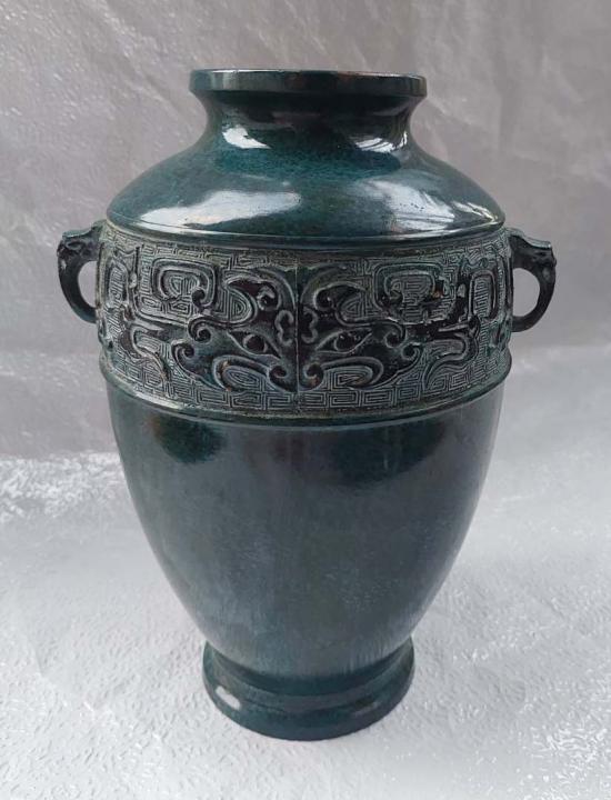 ***วัดใจ***แจกันเก่าเก็บทรงโบราณ หูมังกร เนื้อสำริด สูง 10 นิ้ว น้ำหนักเกือบ2 โล
