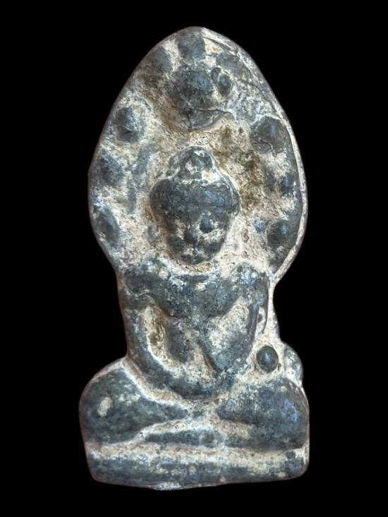 พระเนื้อชินเก่า ไม่ทราบที่ ลักษณะเป็นพระเนื้อชินเดิม ฟอร์มพระกรุทรงมาตรฐาน เส้นสายองค์พระนุ่มตามอายุ ผิวเนื้อชินแห้ง มีคราบกรุและคราบออกไซด์ธรรมชาติปรากฏทั่วองค์ ไม่ผ่านการล้างหรือแต่งผิว เค้าโครงองค์พระยังพอเห็นได้ชัด ฐานและส่วนองค์พระมีร่องรอยการฝังตัวตามธรรมชาติ สภาพโดยรวมเป็นพระเก่าตามสภาพ เหมาะสำหรับสายสะสมพระกรุเนื้อชินเดิม พิจารณาตามภาพเป็นหลัก