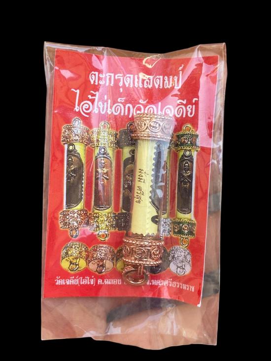 ตะกรุดแสตมป์ ไอ้ไข่เด็กวัดเจดีย์ วัดเจดีย์ จ.นครศรีธรรมราช เครื่องรางสายไอ้ไข่ยอดนิยม จัดสร้างตามความเชื่อดั้งเดิมของวัดเจดีย์ เน้นด้านโชคลาภ การงาน การค้าขาย และการเสี่ยงโชค เหมาะสำหรับพกติดตัว บูชาประจำตัว หรือห้อยรถ พิจารณาตามภาพและความพอใจเป็นหลัก