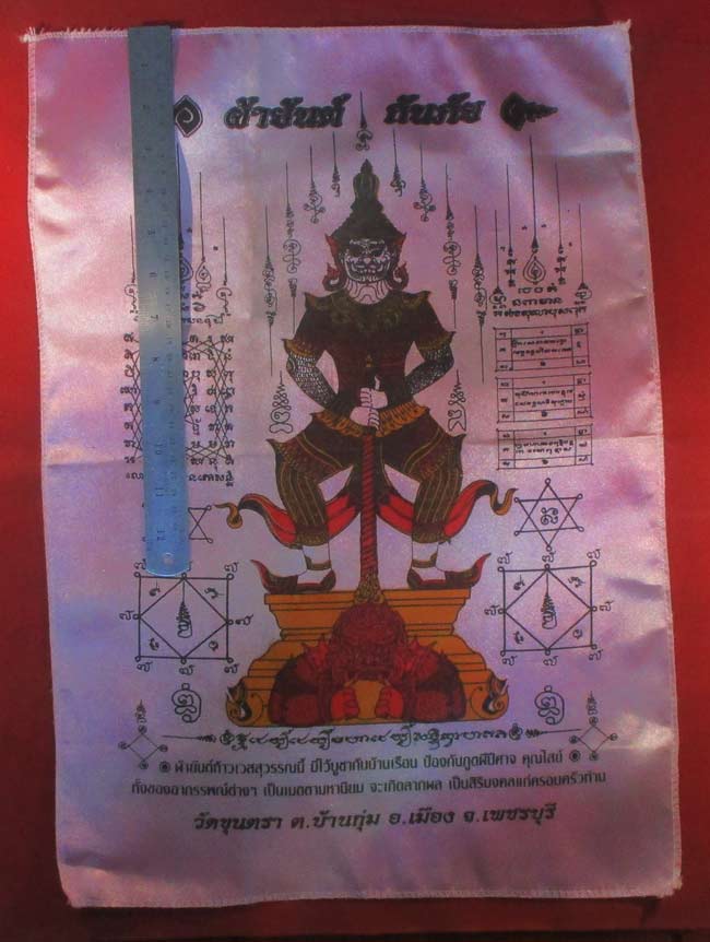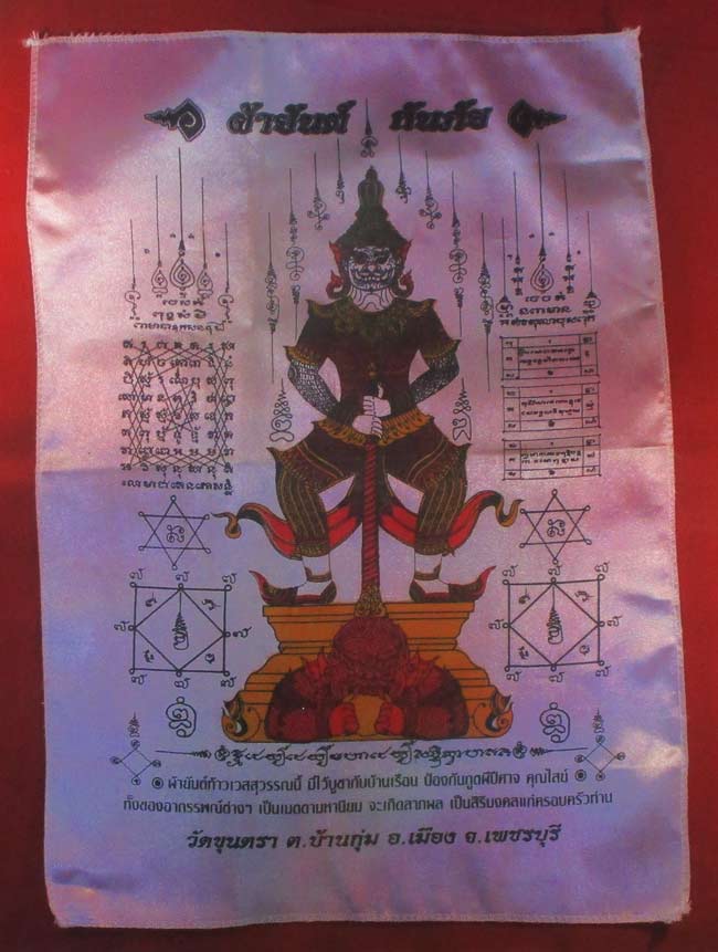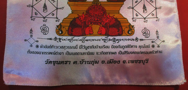 ผ้ายันต์ ท้าวเวสสุวรรณ วัดขุนตรา อ.เมือง จ.เพชรบุรี ครับ