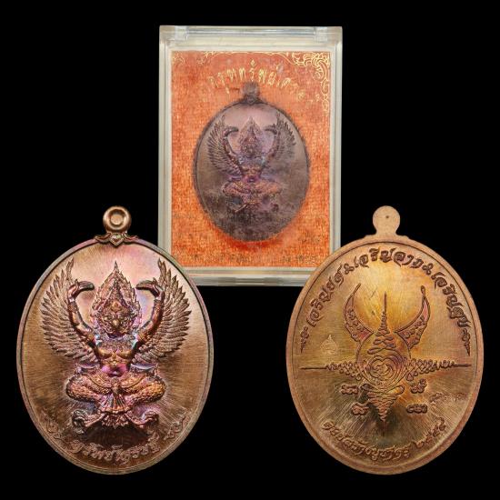 เหรียญพญาครุฑ รุ่นทรัพย์เศรษฐี วัดสันป่าม่วง จ.พะเยา เนื้อทองแดงยอดธาตุ หมายเลข ๘๒๑ พร้อมกล่องเดิม อธิษฐานจิต โดย พระครูวิศิษฎ์พิทยาคม (วราห์ ปุญฺญวโร) ณ วัดโพธิ์ทอง |