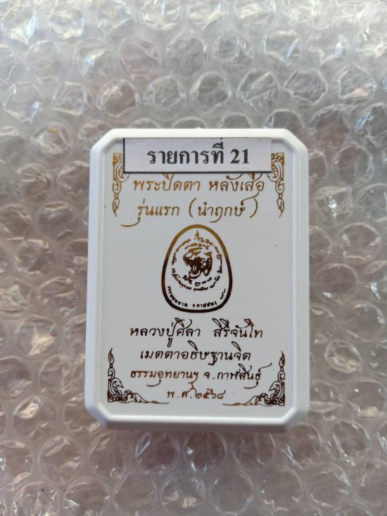 พระปิดตา หลังเสือรุ่นแรก หลวงปู่ศิลา สิริจันโท พิมพ์เล็ก เนื้อผงน้ำมันสีผึ้งมงคล ตะกรุดชนวน 1 ดอก เลข 1453 พร้อมกล่อง