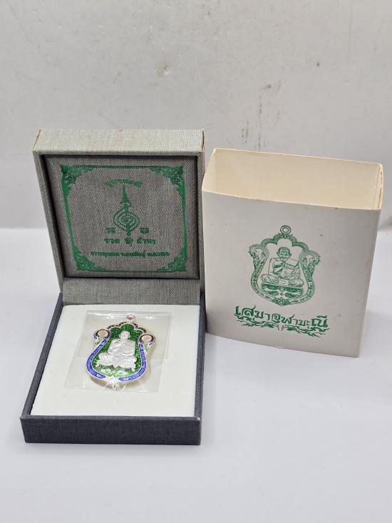 ชื่อพระเครื่อง เหรียญ เสมา จุฬามะณี ปี66 หลวงปู่มหาศิลา หลวงปู่ศิลา สิริจันโท ธรรมอุทยาน วัดพระธาตุหมื่นหิน จ.กาฬสินธุ์ เนื้อเงินลงยาเขียว เลข ๒๕๓ มีกล่องเดิม