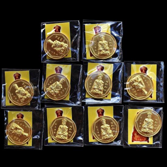 ชุด 10 องค์...เหรียญไต้ฮงกง หลังยันต์กันภัย เนื้อกะไหล่ทอง ปี 2551 มีภาพเทพเจ้าไต้ฮงกง ในซองทุกเหรียญ บวงสรวง ศาลเจ้าพลับพลาชัย หลวงพ่อรวย วัดตะโก , พ่อท่านบุญให้ วัดท่าม่วง ปลุกเสก |