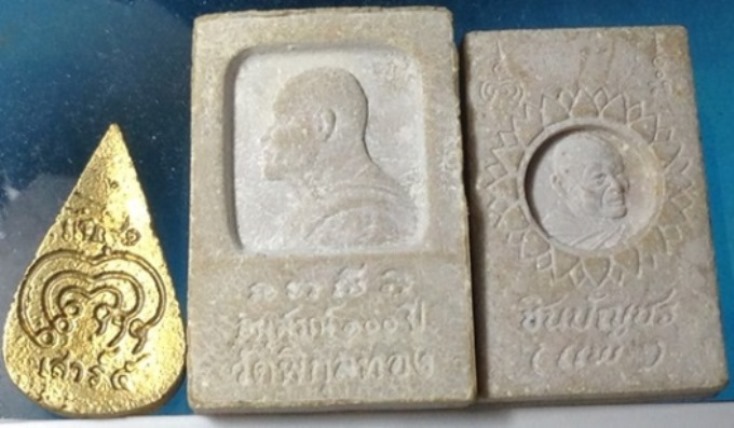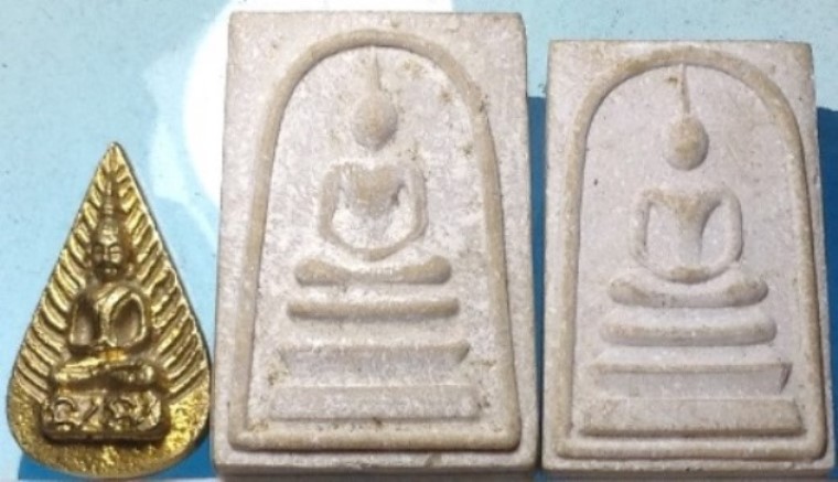 พระสมเด็จหลังรูปเหมือนหลวงพ่อแพ วัดพิกุลทอง 2 องค์(อนุสรณ์100 ปี+ชินบัญชร) + เหรียญหล่อหยดน้ำ แพ ๙๑ เสาร์๕