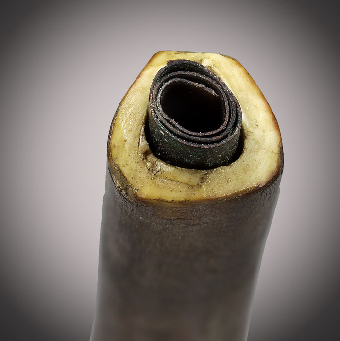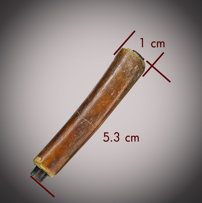 ตะกรุดทำจากกระดูก สอดด้านในด้วยตะกรุดทองแดง(ไม่ทราบที่) ขนาดอ้วน 1 cm ยาว 5.3 cm |