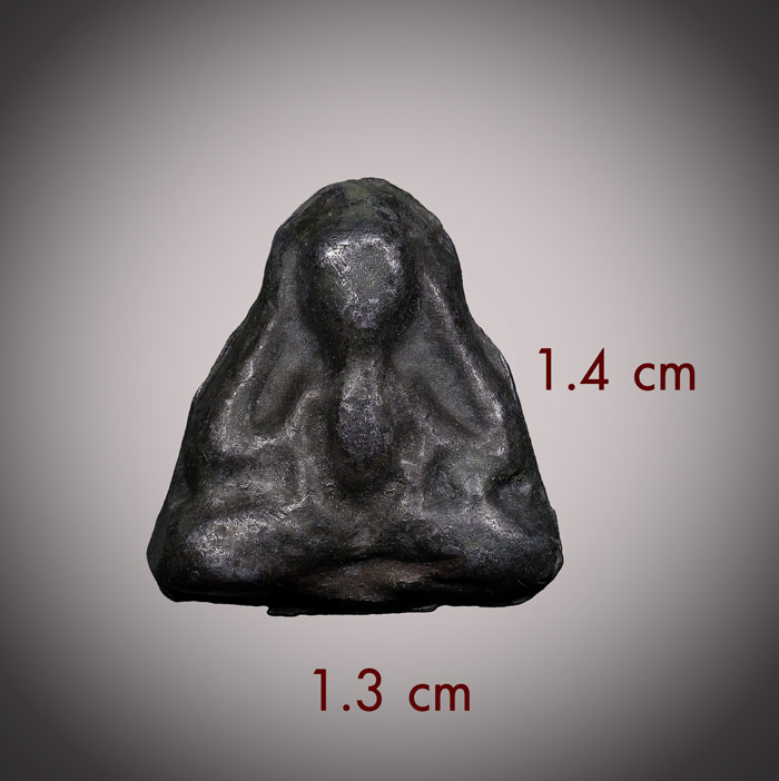 พระปิดตา เนื้อตะกั่วเก่า (ไม่ทราบที่) ขนาดพระ ฐาน 1.3 cm สูง 1.4 cm |