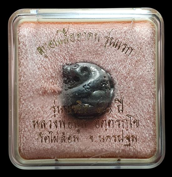 ลูกอมเสืออาคมเนื้อชินเงิน รุ่นแซยิด 91 ปี จัดสร้างใน ปี2545 หลวงพ่อพูล วัดไผ่ล้อม |