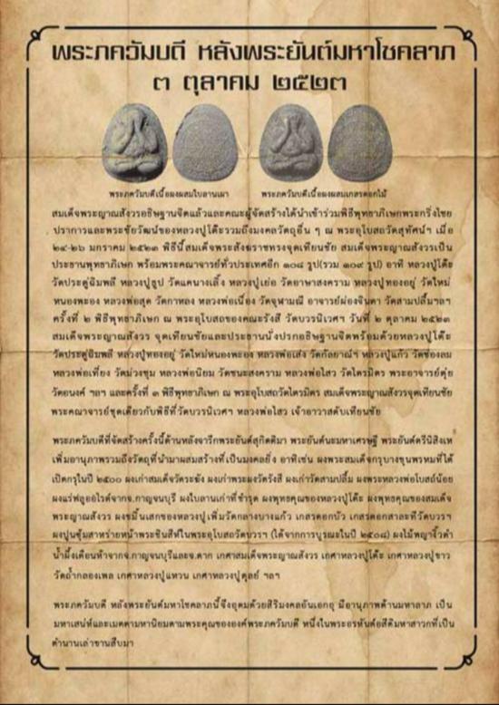 พระปิดตายันต์ดวงเล็ก ปี2523 สมเด็จพระญาณสังวร (เจริญ) วัดบวรนิเวศวิหาร ทรงอธิษฐานจิตและเข้าพิธี ณ อุโบสถคณะรังสีและวัดไตรมิตรวิทยาราม โดยมีพระคณาจารย์ในยุคนั้นร่วมพิธี เช่น