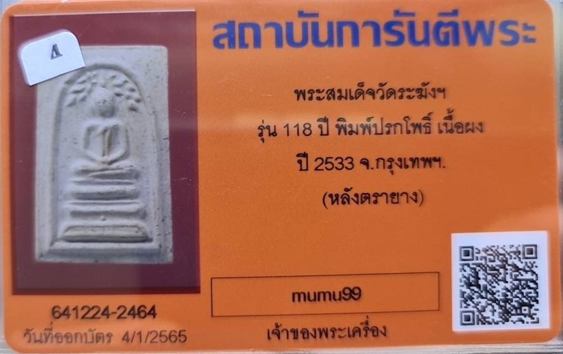 ## สมเด็จวัดระฆัง อนุสรณ์ 118ปี พ.ศ.2533 พิมพ์ปรกโพธิ์ "พระสวยเดิมไม่ผ่านการใช้.หลังปั้มตรายาง...พร้อมบัตรรับรอง.""รับประกันแท้ตลอดฃีพและแท้ตามมาตรฐานสากล....... อนาคตดี ถูกๆเลยครับ.... ราคายังไม่แรง. |