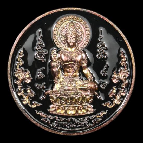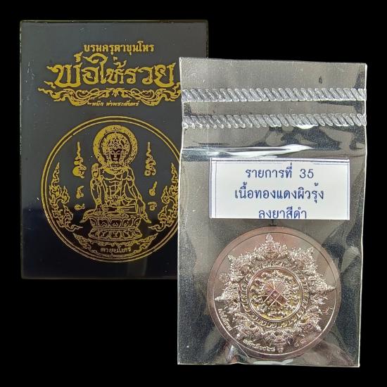 เหรียญบรมครูตาขุนโหร หลักเมือง ๖๘ รุ่น "พ่อให้รวย" นครศรีธรรมราช จัดสร้างโดย หมึก ท่าพระจันทร์ เนื้อทองแดงผิวรุ้งลงยาดำ หมายเลข ๘๗ (เลขสองหลัก) พร้อมกล่องเดิม ปลุกเสก ๔ วาระ พิธีใหญ่แห่งปี เกจิดังทั่ว