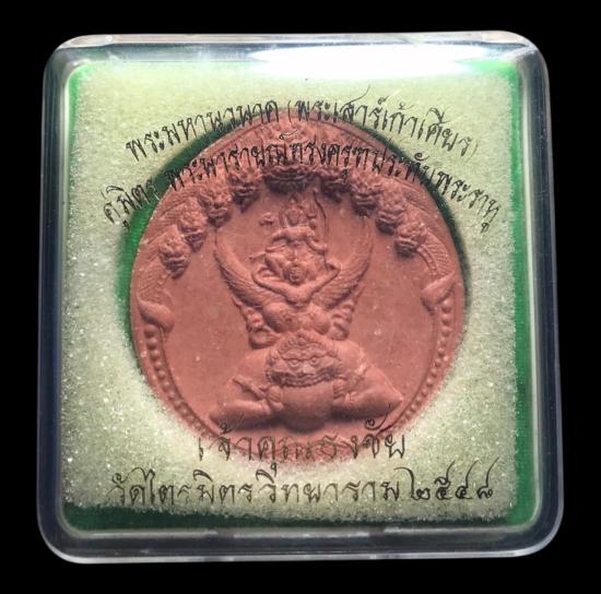 พระนารายณ์ทรงครุฑ ประทับพระราหู เนื้อผงแดง(สุริยัน) ปี2548 เจ้าคุณธงชัย วัดไตรมิตรวิทยาราม เนื้อแดง พร้อมกล่องเดิม |