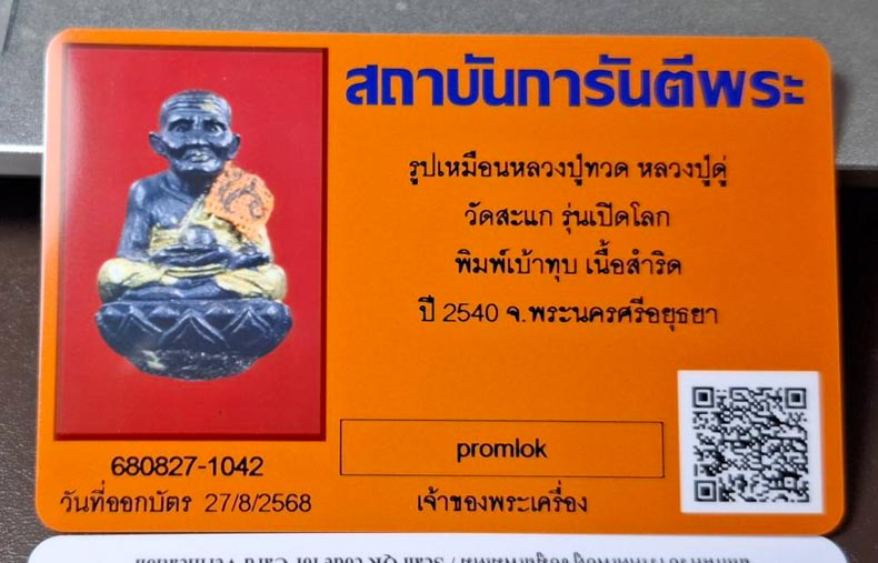 รูปเหมือนหลวงปู่ทวด หลวงปู่ดู่ วัดสะแก รุ่นเปิดโลก พิมพ์เบ้าทุบ เนื้อสำริด ปี 2540 จ.พระนครศรีอยุธยา |
