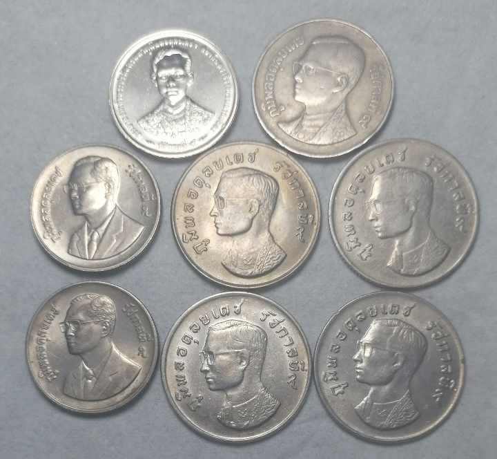 ชุดแรก เหรียญ ๑ บ.หลังครุฑ คัดสวย ๆ 4 เหรียญ ๒ + บ.งานปีต้นไม้ 2 เหรียญ + ๒ บ.กาญจนาภิเษก 1 เหรียญ + เหรียญ ๕ บ.ปี ๒๕๓๐ 1 เหรียญ