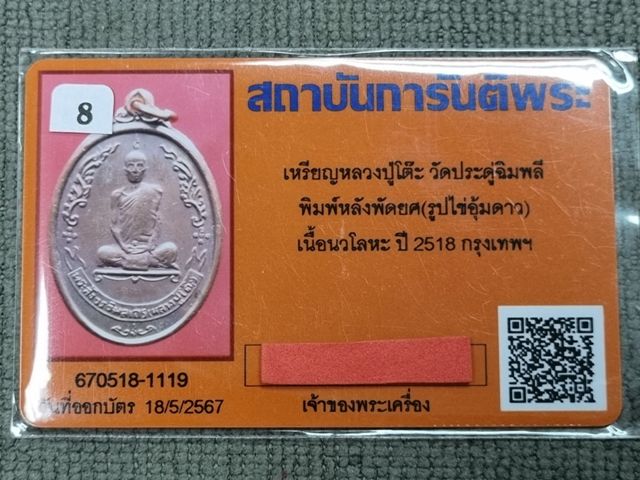 เหรียญหลวงปู่โต๊ะ รูปไข่พัดยศ ปี2518 เนื้อนวะ (นิยมอุ้มดาว)พร้อมบัตรรับรองสวยๆครับ
