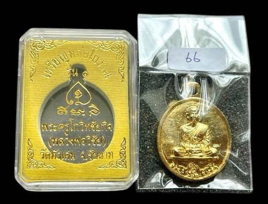 เหรียญหล่อรุ่นแรก หลวงพ่อวิชัย วัดหัวเด่น "เนื้อชนวนกะไหล่ทอง" (กรรมการ) เลขเบิ้ลสวย จารมือครบสูตร |