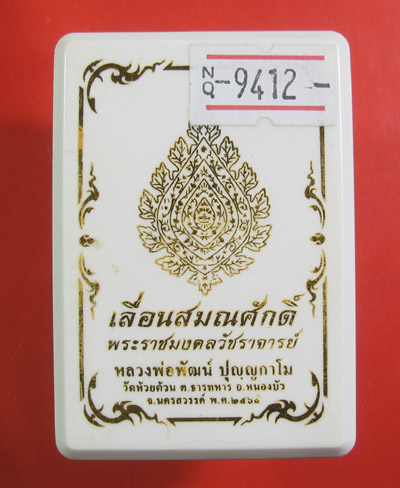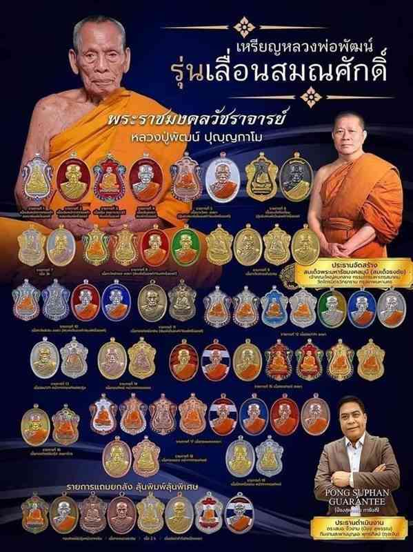 หรียญพิมพ์ครึ่งองค์ หลวงพ่อพัฒน์ ปุญณกาโม รุ่นเลื่อนสมณศักดิ์ ปี 2565 รายการที่ 9.4 เนื้อกะไหล่ทองโบราณ พ่นทราย หมายเลข 9412