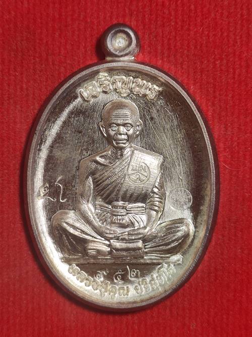 เหรียญหลวงพ่อคูณ ปริสุทโธ รุ่น เจริญพรบนเทพประทานพร ออกวัดบ้านไร่ ปี 58 เนื้อ เงิน หมายเลข 952 สภาพสวย เคาะเดียวแดง