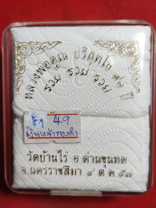 เหรียญหลวงพ่อคูณ ปริสุทโธ 91 ปี รุ่น รวย รวย รวย ออกวัดบ้านไร่ ปี 57 เนื้อ เงินหน้าทองคำ หมายเลข 49 สภาพสวย เคาะเดียวแดง