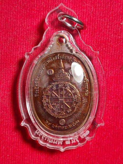 เหรียญหลวงพ่อคูณ ปริสุทโธ รุ่น พินัยกรรมที่ระลึกพิธีถวายเพลิง หลวงพ่อคูณ วัดบ้านไร่ ปี 62 เนื้อ ทองแดงลงยาสีขาว หมายเลข 501 เลี่ยมพร้อมใช้ เคาะเดียวแดง