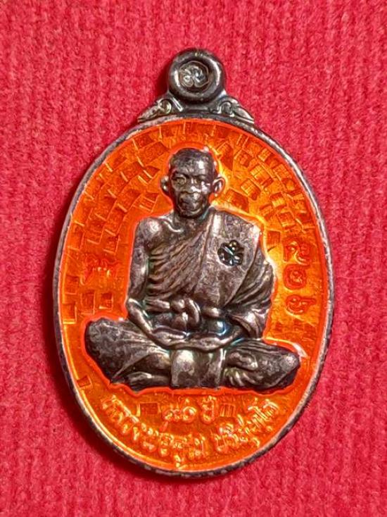 เหรียญเม็ดแตงหลวงพ่อคูณ ปริสุทโธ รุ่น ฉลองวิหารเทพ ออกวัดบ้านไร่ ปี 56 เนื้อ เงินลงยาสีส้ม หมายเลข 526 สภาพสวย เคาะเดียวแดง