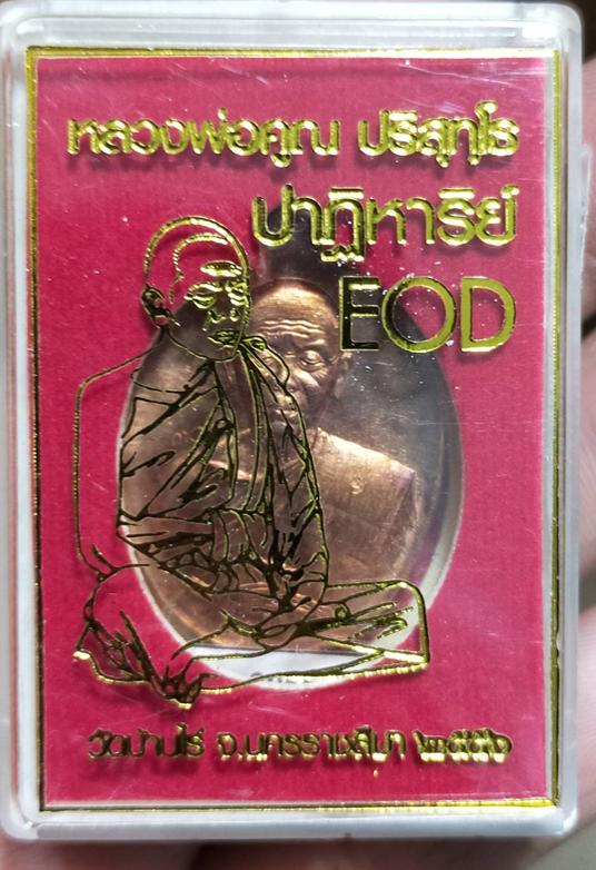 เหรียญหลวงพ่อคูณปฎิหาร EOD วัดบ้านไร่ปี 56 เนื้อทองเเดงผิวไฟ สภาพสวยๆ ซีลเดิมกล่องเดิม