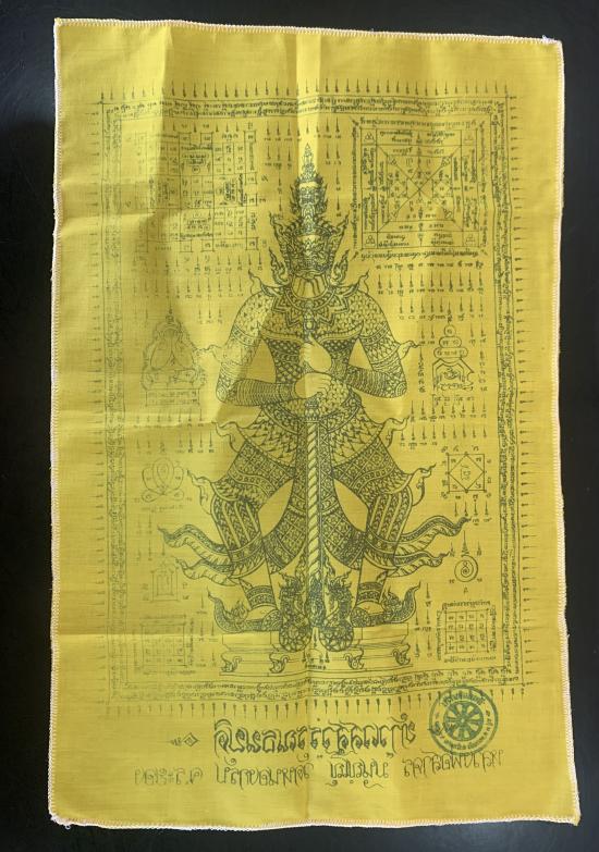 ผ้ายันต์เหลืองท้าวเวสสุวรรณธนบดี หลวงพ่อสาคร มนุญโญ วัดหนองกรับ ขนาดประมาณ 12 x 18 นิ้ว |