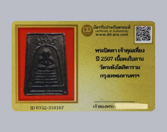 พระปิดตา เจ้าคุณเที่ยง ปี 2507 เนื้อผงใบลาน วัดระฆังโฆสิตาราม กรุงเทพมหานครฯ น่าบูชามากค่ะ + บัตร