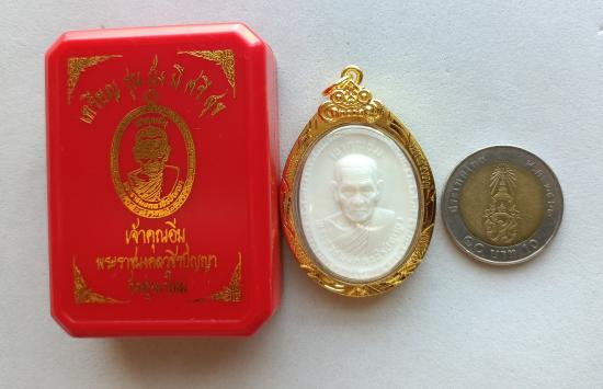ชื่อพระเครื่อง วัดใจเคาะเดียวแดงจ้า งาแกะรูปเหมือนหลวงปู่อิ่ม วัดทุ่งนาใหม่ รุ่นมั่งมีศรีสุข หมายเลข1 เลี่ยมกรอบชุบทอง เคาะเดียวแดงจ้า