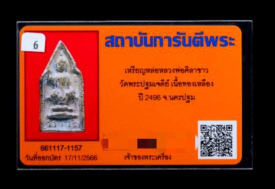 พระหลวงพ่อศิลาขาว วัดพระปฐมเจดีย์ เนื้อทองเหลือง ปี 2496 จ.นครปฐม พร้อมบัตรรับรอง เคาะเดียวครับ