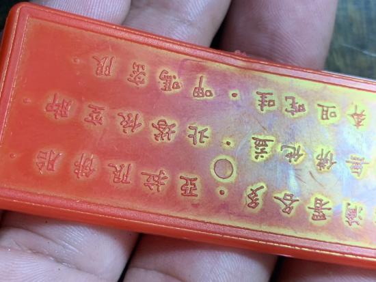 แผ่นพลาสติกหลังยันต์ภาษาจีน หลวงพ่อโอภาสี |