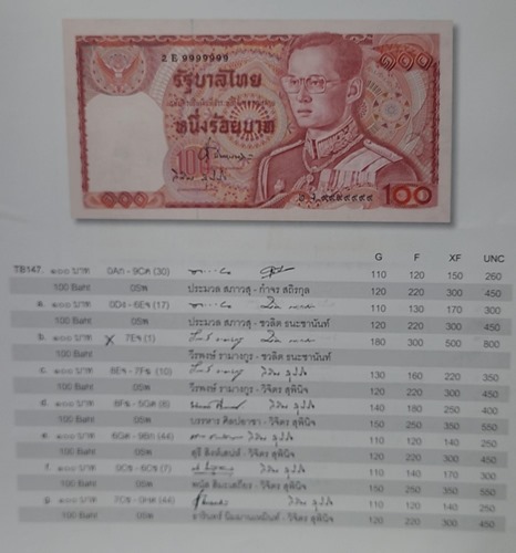 ราคาประเมิน หมวด 7E ลายเซ็น วีรพงษ์ รามางกูร - ชวลิต ธนะชานันท์ สภาพ UNC ฉบับละ 800 บาท ข้อมูลจาก จากหนังสือ"คู่มือธนบัตรไทย" โดย อ.สมชาย แสงเงิน