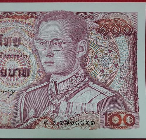 ธนบัตร 100 บาท ร.9 แบบ 12 หลังช้างแดง เลขเรียง 4 ฉบับ ลายเซ้นหายาก พิมพ์น้อยมาก สภาพ UNC ไม่มีรอยพับ