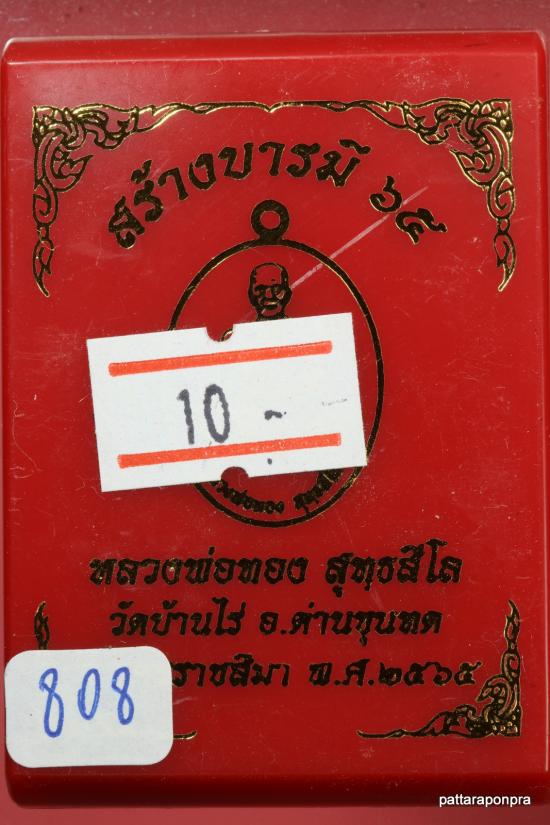 เหรียญหลวงพ่อทอง รุ่นสร้างบารมี ปี 2565 เนื้อปีกเครื่องบิน หมายเลข 808 |