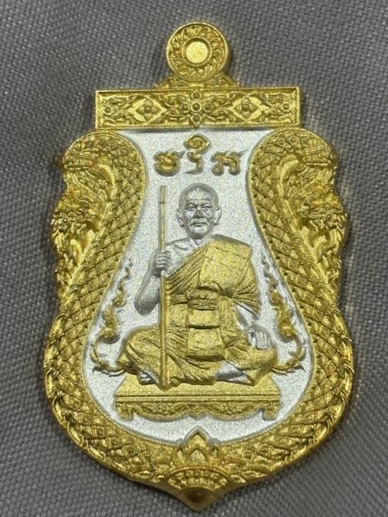 เหรียญเสมาพญาเสืออุดมทรัพย์ พระอาจารย์ประสูติ (หลวงพ่อประสูติ) วัดในเตา ตรัง เนื้อ2K องค์2K พื้นเงิน ขอบทอง หมายเลข62 |