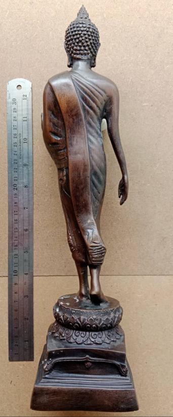 พระบูชา ปางลีลา เนื้อโลหะ ความสูง 16 นิ้ว ขนาดฐาน 4 นิ้ว x 4 นิ้ว ตามรูป