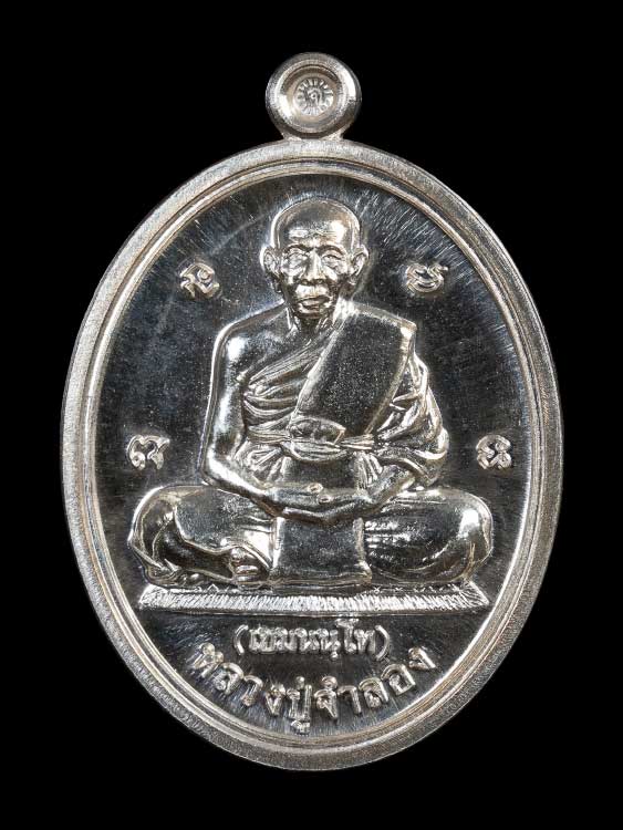 เหรียญหลวงปู่จำลอง วัดเจดีย์แดง จ.อยุธยา รุ่นเสาร์ 5 ฉลองอาย ุ 86 ปี พ.ศ.2553 เนื้อเงิน ตอก 2โค๊ต ตอกเลข กล่องเดิม