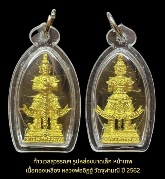 ท้าวเวสสุวรรณฯ รูปหล่อขนาดเล็ก หน้าเทพ เนื้อทองเหลือง หลวงพ่ออิฏฐ์ วัดจุฬามณี ปี 2562