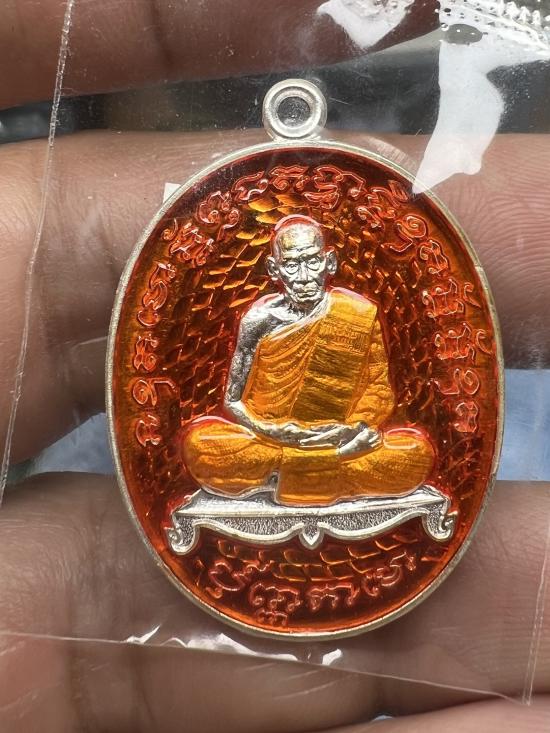 เหรียญเจริญพร2 (พิมพ์เต็มองค์) หลวงพ่อพัฒน์ วัดห้วยด้วนเนื้อเงินลงยาพื้นสีส้ม เบอร์ 4826 (ราคาเงินกำลังขึ้นครับช่วงนี้)