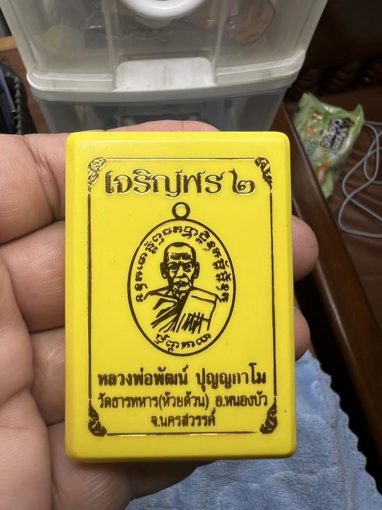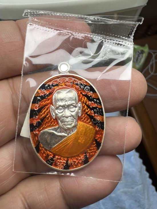 เหรียญเจริญพร2 (พิมพ์ครึ่งองค์) หลวงพ่อพัฒน์ วัดห้วยด้วน เนื้อเงินลงยาสีส้ม เบอร์ 7838 สวยเดิมพร้อมกล่อง