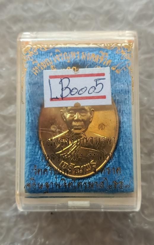 เหรียญเจริญพรล่าง ครึ่งองค์ อายุ88 หลวงปู่บัว วัดศรีบูรพาราม จ.ตราด ปี2557 |