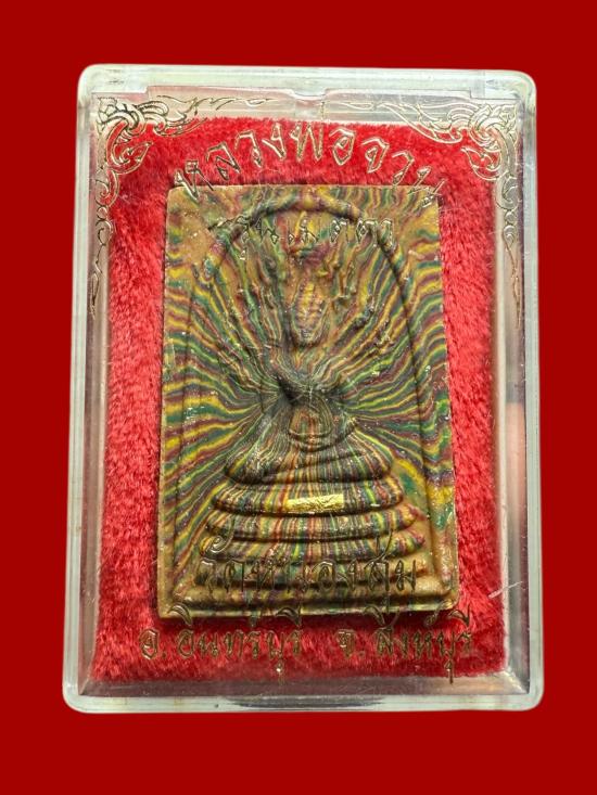 พระผงสายรุ้งนาคปรก หลังรูปเหมือน ตะกรุดทอง หลวงพ่อจวน วัดหนองสุ่ม รุ่นเมตตา |