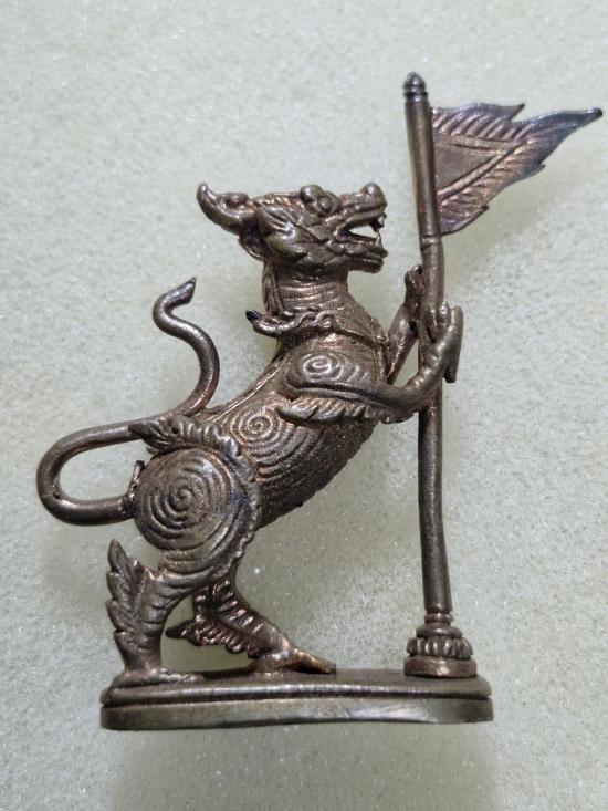 สิงหราชเชิญธง หลวงพ่อชำนาญ วัดบางกุฎีทอง ใต้ฐานมีรอยจาร