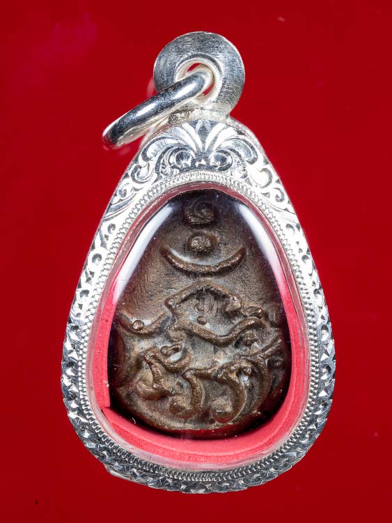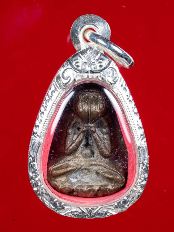 ปิดตาจันทร์เพ็ญรุ่นแรก หลวงพ่อคล้อย วัดภูเขาทอง จ.พัทลุง พ.ศ .2535 พิมพ์กลีบบัว เนื้อนวะ เลี่ยมตลับเงิน !!